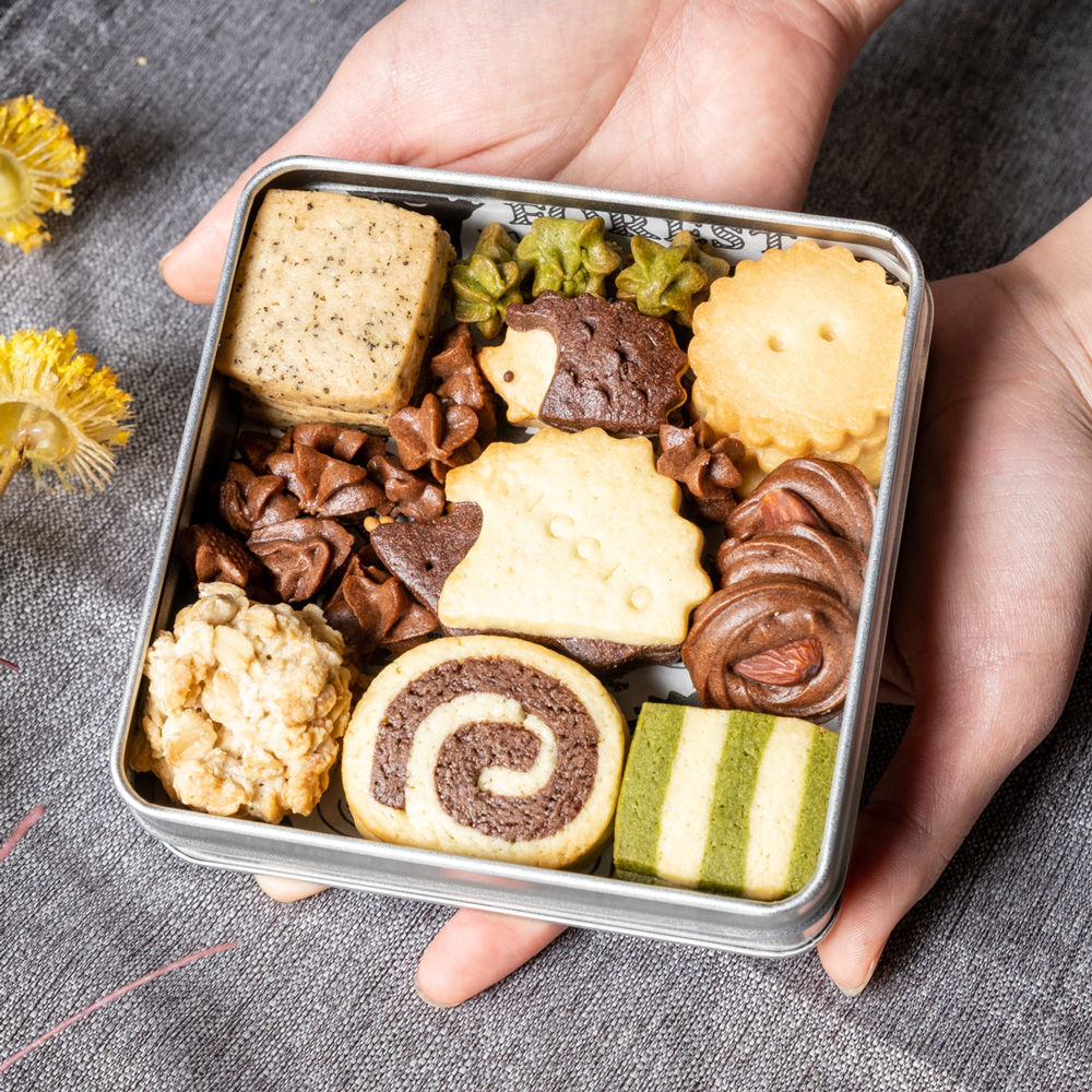 発酵バターと米油を使用した9種類のクッキーが入ったクッキー缶です✴︎